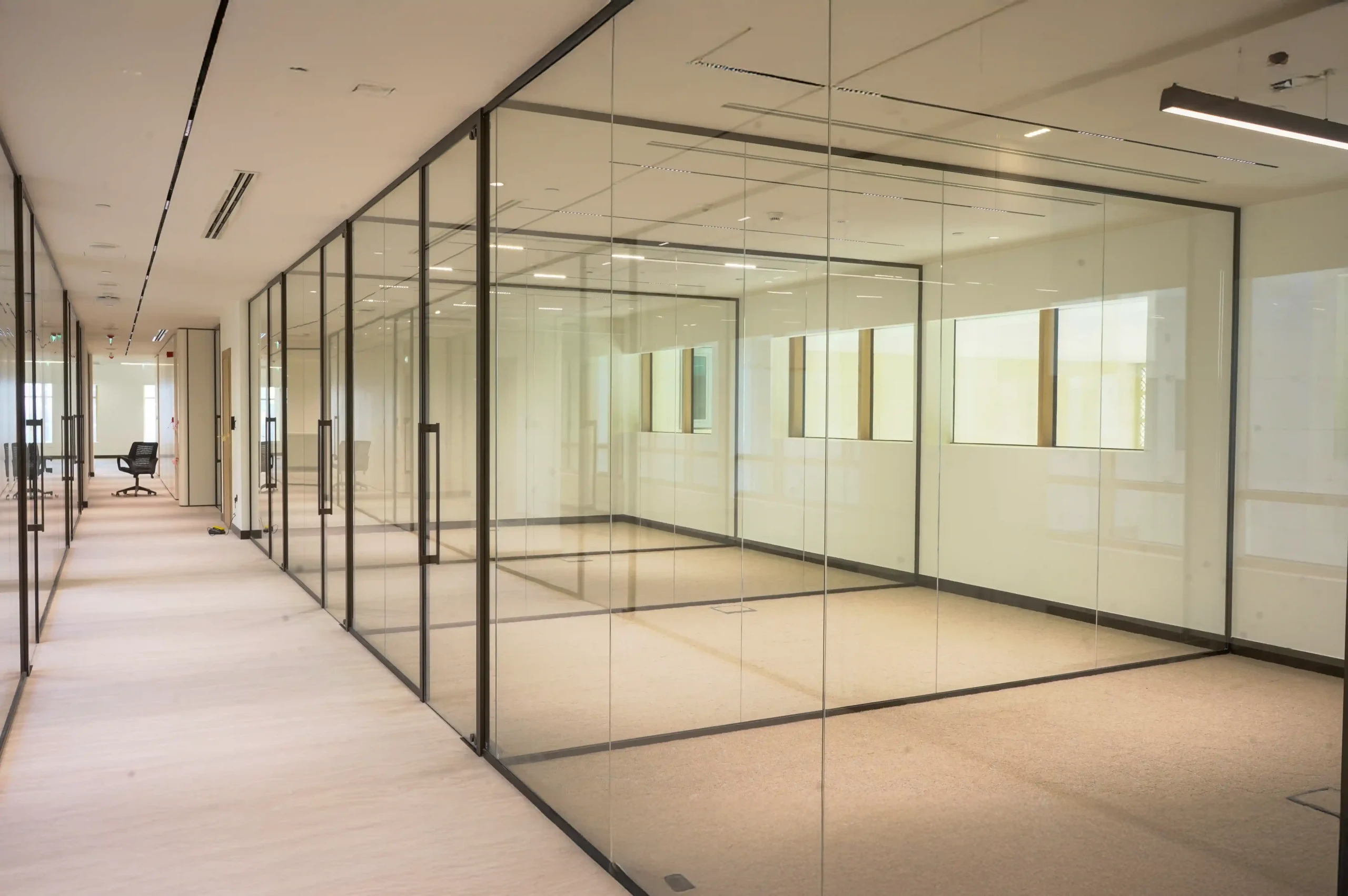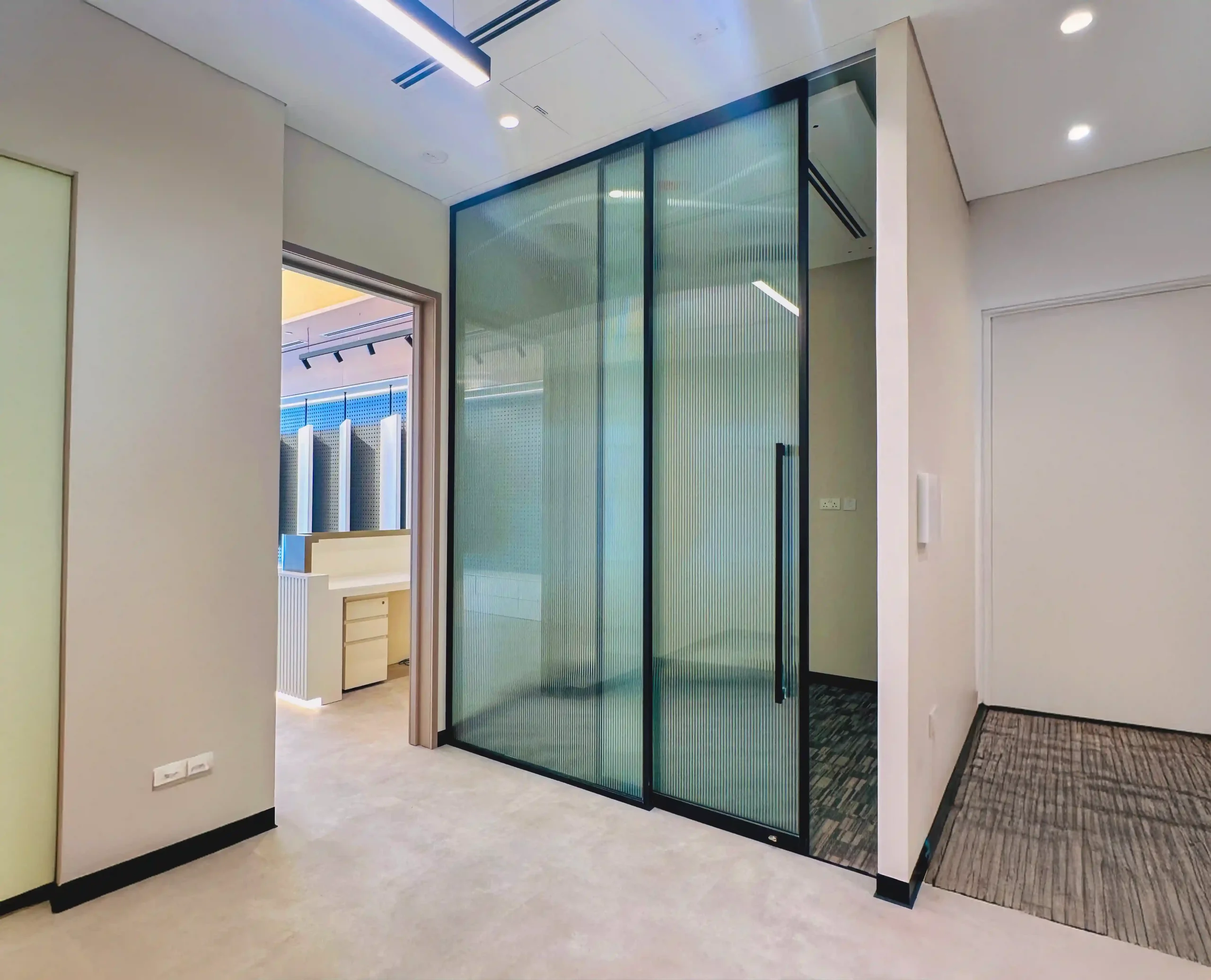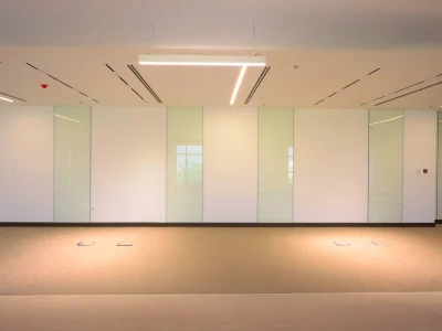 Our VEE partitions brought the entire design together, incorporating a range of sliding doors, fixed panels, and custom solutions to suit the ministry’s operational needs. Each element was thoughtfully aligned to enhance transparency and connectivity between departments while maintaining the functional separation required in a dynamic workspace.