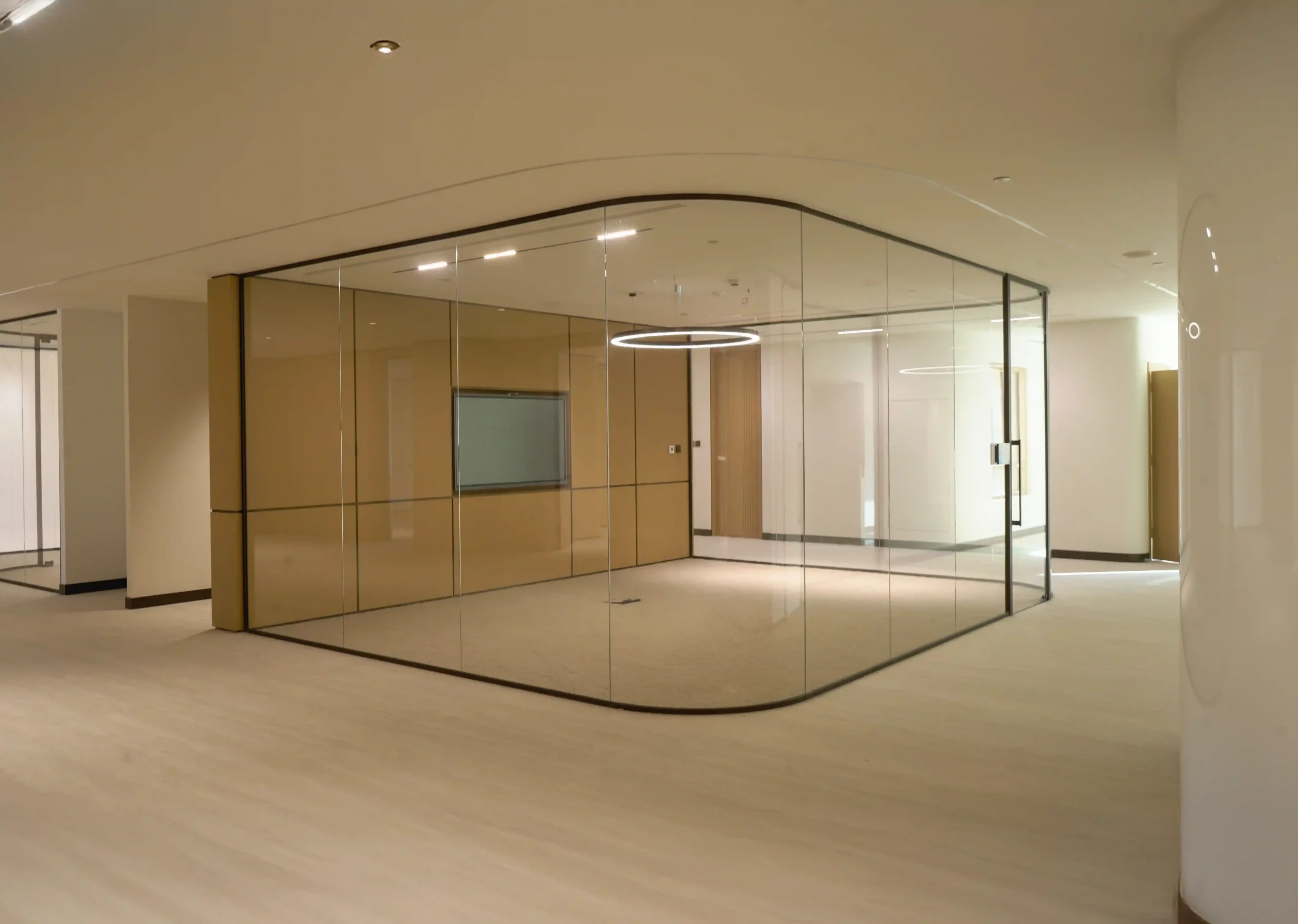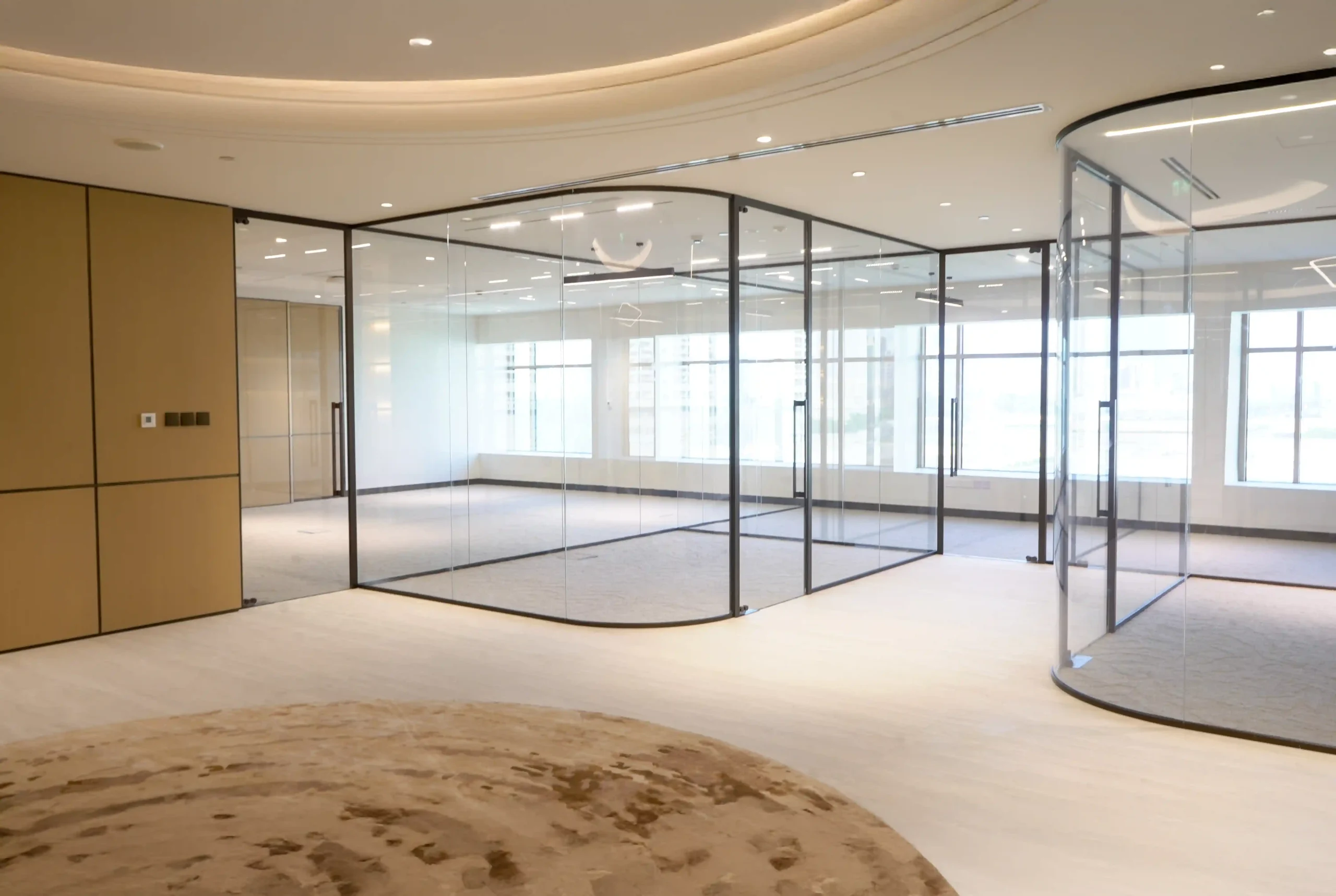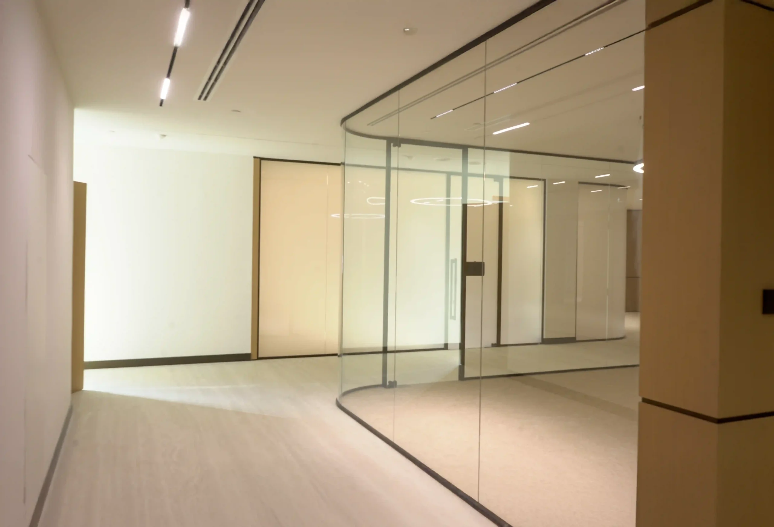 At the Ministry of Community Development offices in Dubai, our mission was to create an environment that embodies both openness and refinement. The project, spanning the 3rd and 4th floors, called for the installation of our VEE Aluminium Partitioning System, a solution designed not just for function but for a seamless blend of privacy and light. The space was transformed with elegantly curved glass panels that followed the rhythm of the building’s elevation, creating a soft, fluid visual flow that reflected the ministry’s forward-thinking spirit.